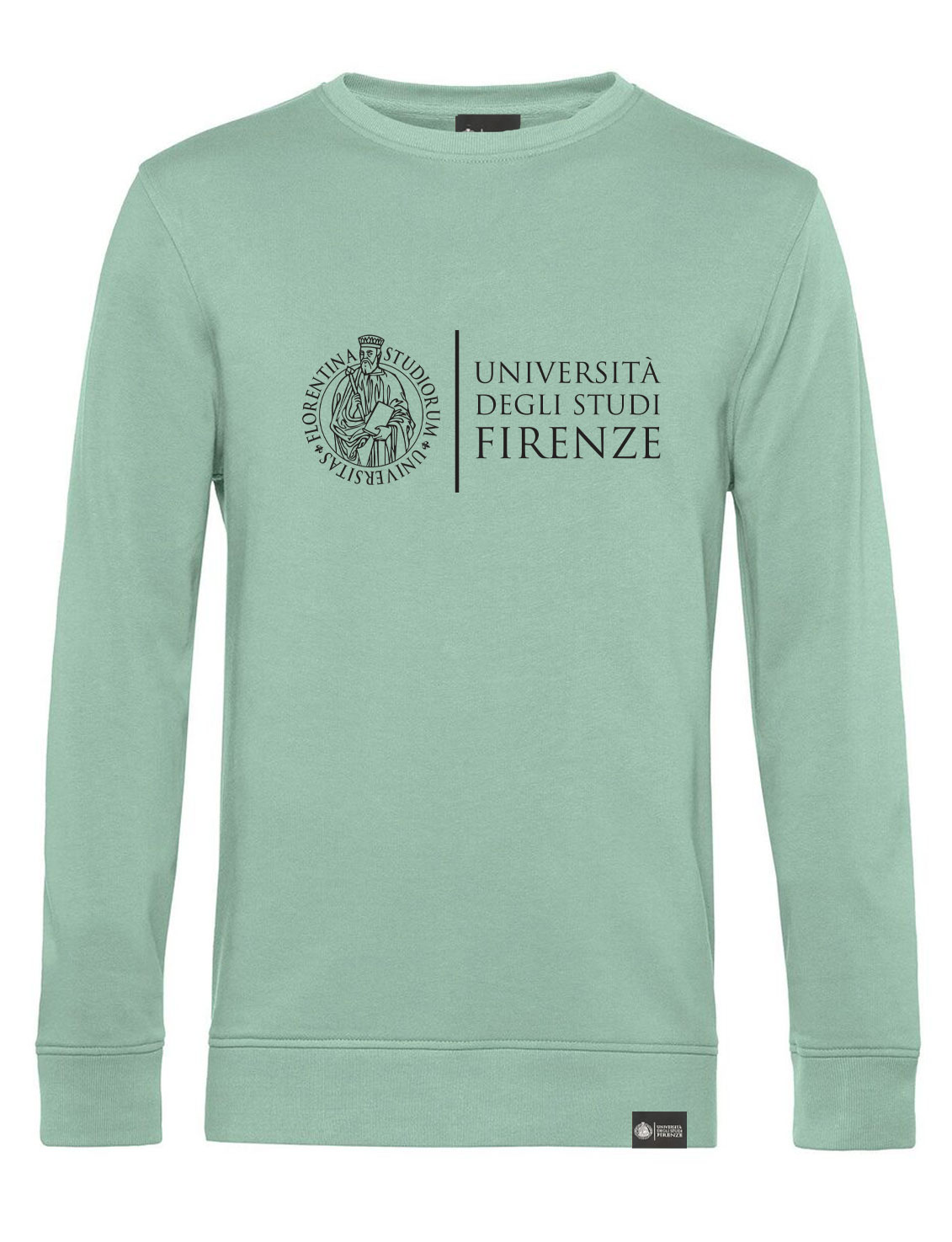 Felpa girocollo con maniche set-in, prodotta con 6 bottiglie di plastica riciclate, struttura con cuciture laterali, nastro parasudore a spina di pesce di alta qualità, mezzaluna in single Jersey sulla schiena per una facile personalizzazione. Sgarzata internamente, esternamente 100% cotone, molto morbida e liscia . TESSUTO 80% Cotone ring-spun organico o organico in-conversion, preristretto, 20% Poliestere riciclato RCS.